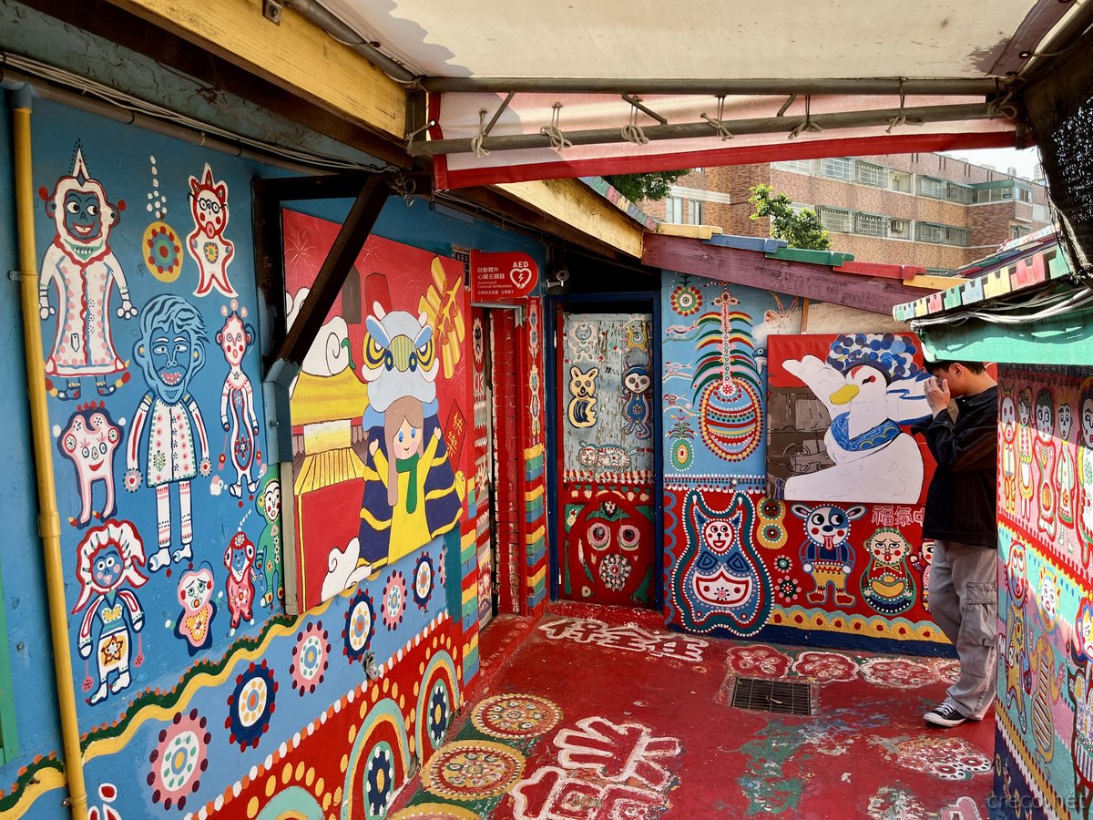 彩虹眷村は、元軍人の老人が住んでいた古い集落の壁や地面に、カラフルな絵を描き続けたことで有名になった場所である。