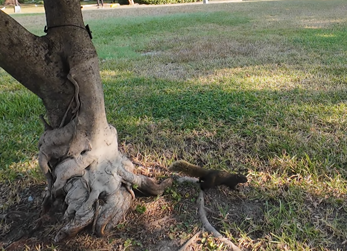 木々を眺めていると、タイワンリスがしれっと現れた。日本では特定外来生物として問題になっているが、ここは彼らの故郷。もこもこした尻尾が可愛らしい。
