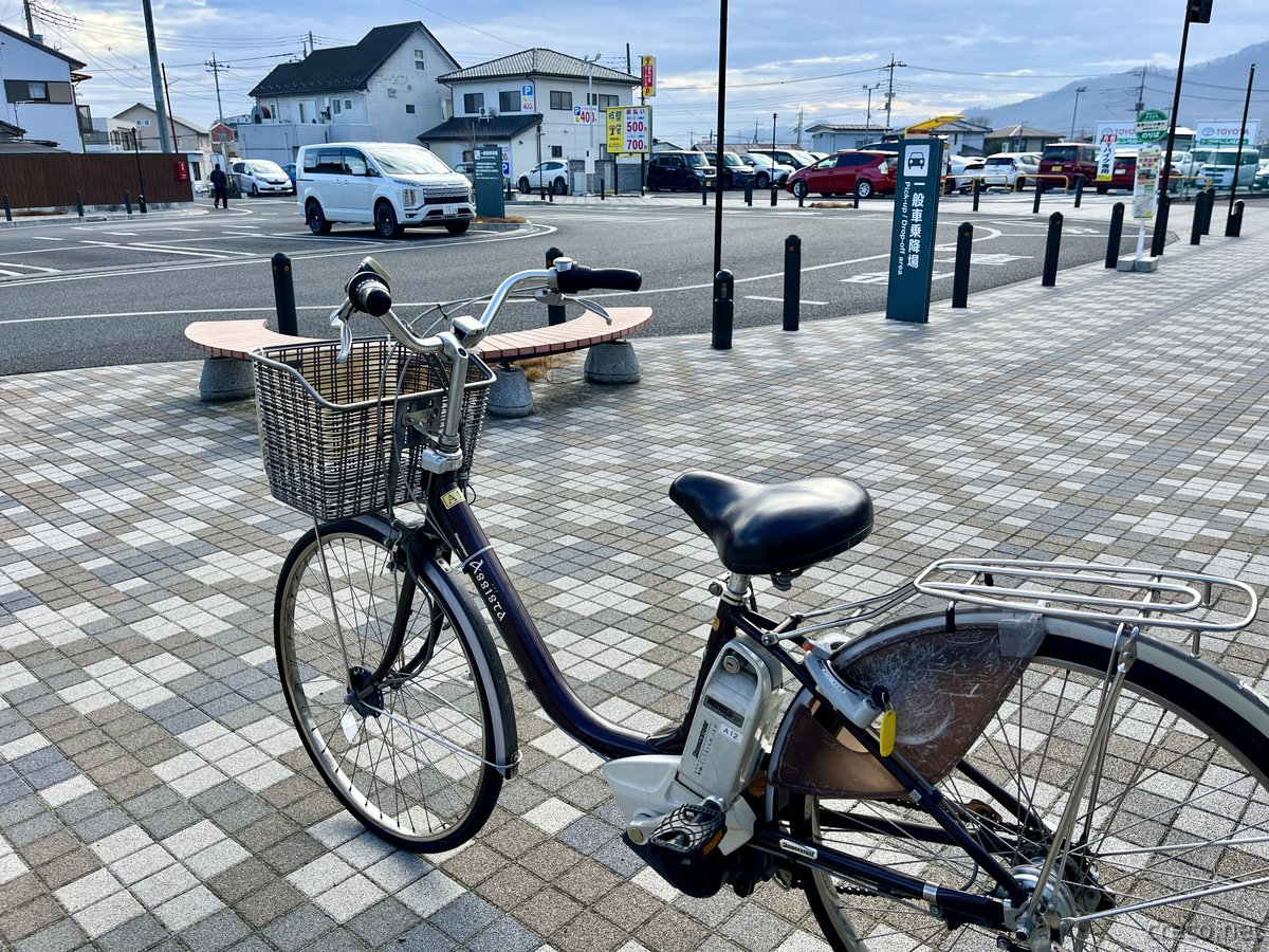 新桐生駅売店「Think桐生」で電動アシスト自転車を無料で借りて、吾妻公園の駐車場まで移動。