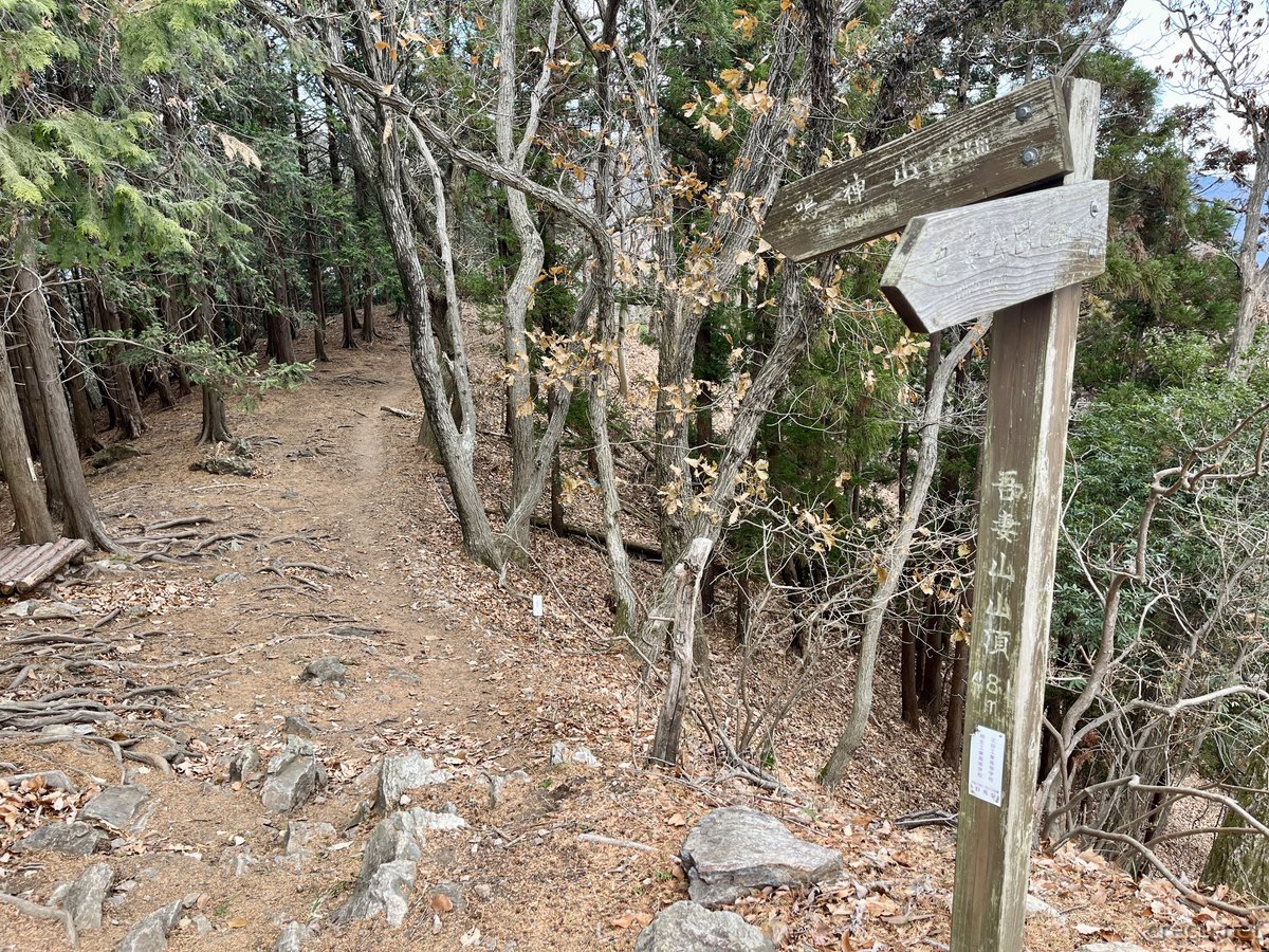 低山と侮っていましたが、男坂は三点確保が必要な岩場があり、久しぶりの岩場に張り付く登山も楽しかったです。原作でほのかが感じたように、「ラフな格好の地元の人が実は吾妻山に最適な装備だった」というのも納得の、地元に愛される里山という印象でした。