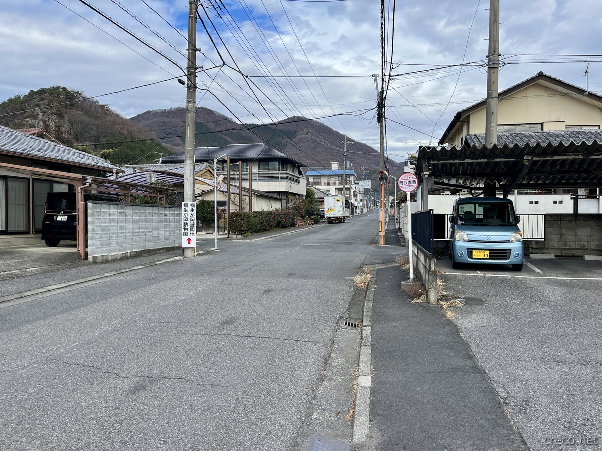 JR両毛線の桐生駅が最寄り駅です。桐生駅からは、予約制おりひめバス(予約制乗合タクシー)で原作カットに登場した岡公園西バス停まで行けますが、1日5便で事前に予約が必要です。徒歩の場合は桐生駅から吾妻公園まで約20分。